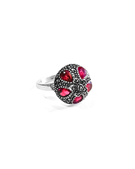Anillo cráneo completo de obsidiana con base de plata