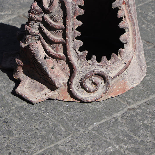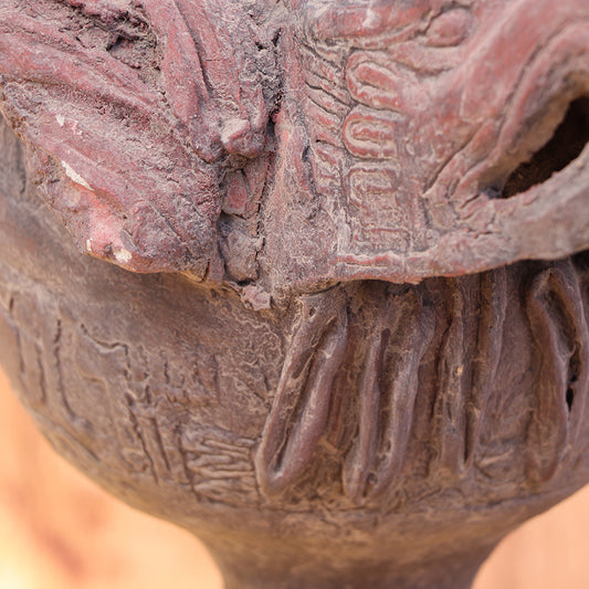 Vasija grande grabada trípode con tapa quetzalcoatl