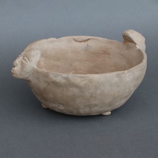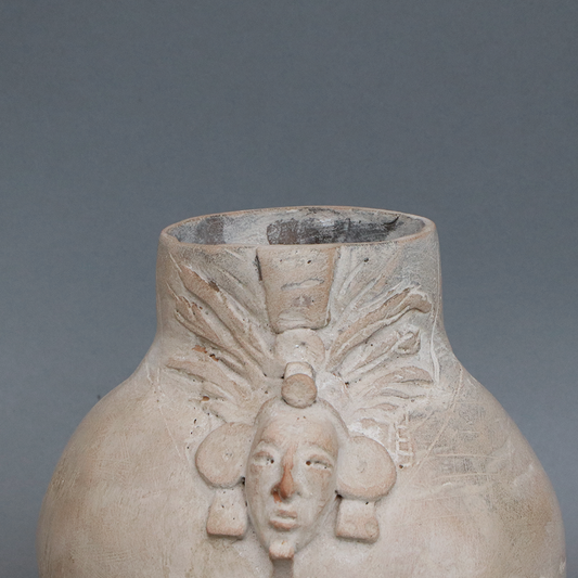 Vasija grabada trípode con tapa y mascara teotihuacana