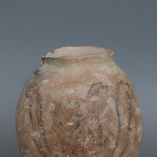 Vasija chica grabada trípode con tapa quetzalcoatl