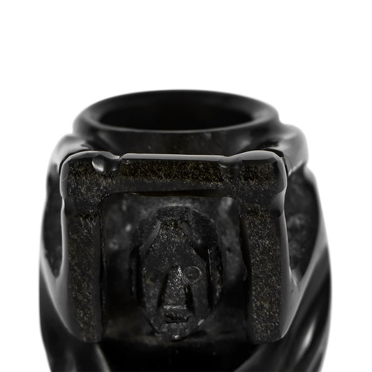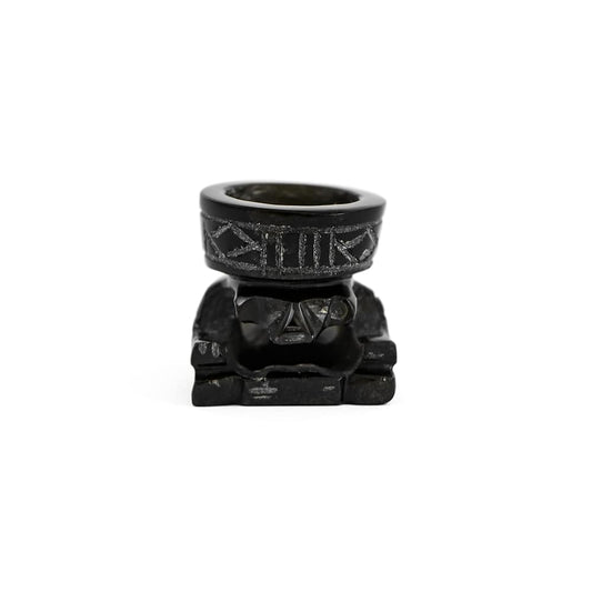 Vasija chica grabada trípode con tapa quetzalcoatl