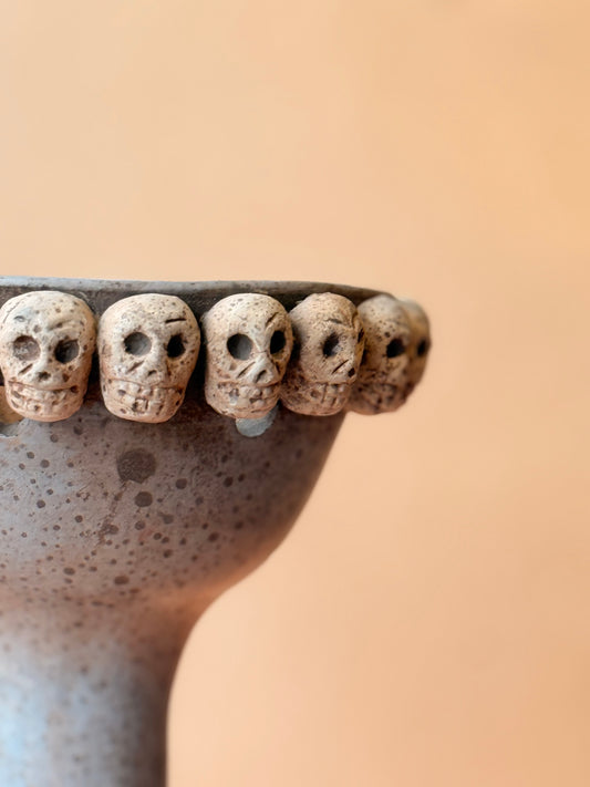 Vasija grabada trípode con tapa y mascara teotihuacana