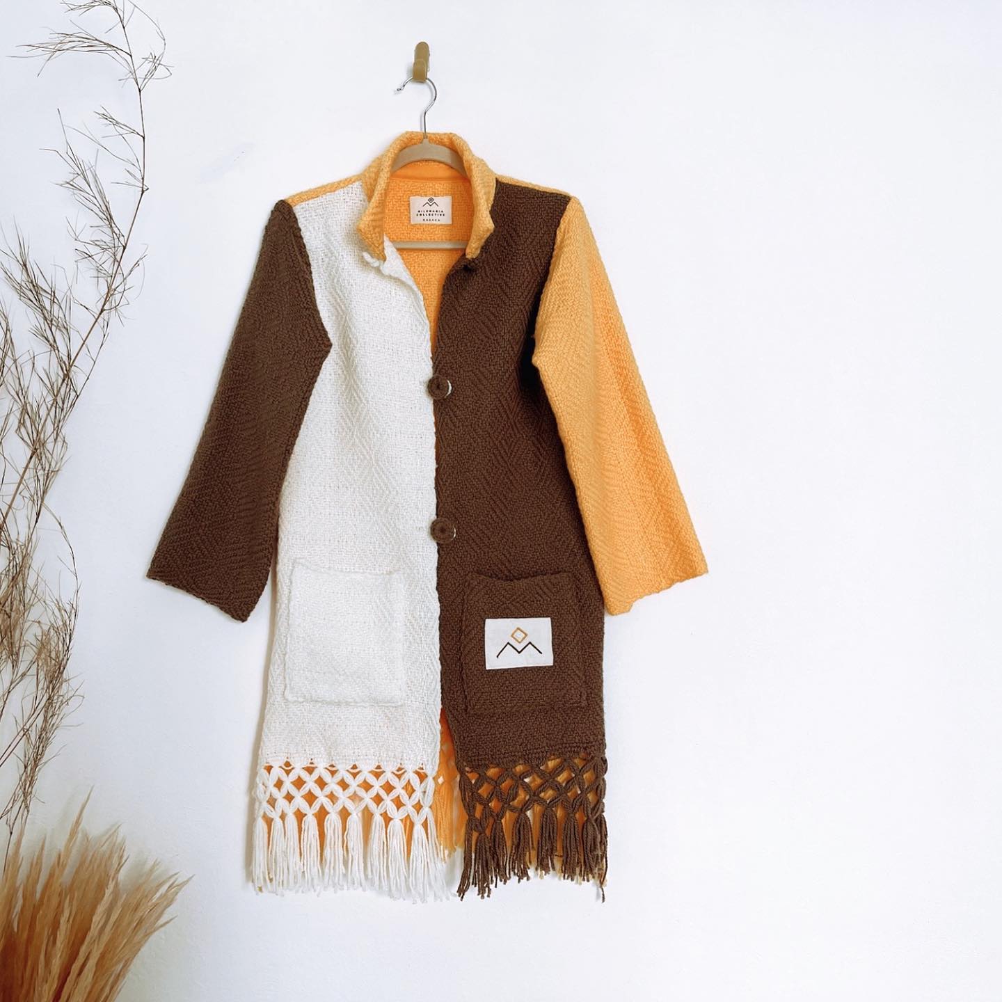Abrigo tejido en telar de pedal y confeccionado a mano.