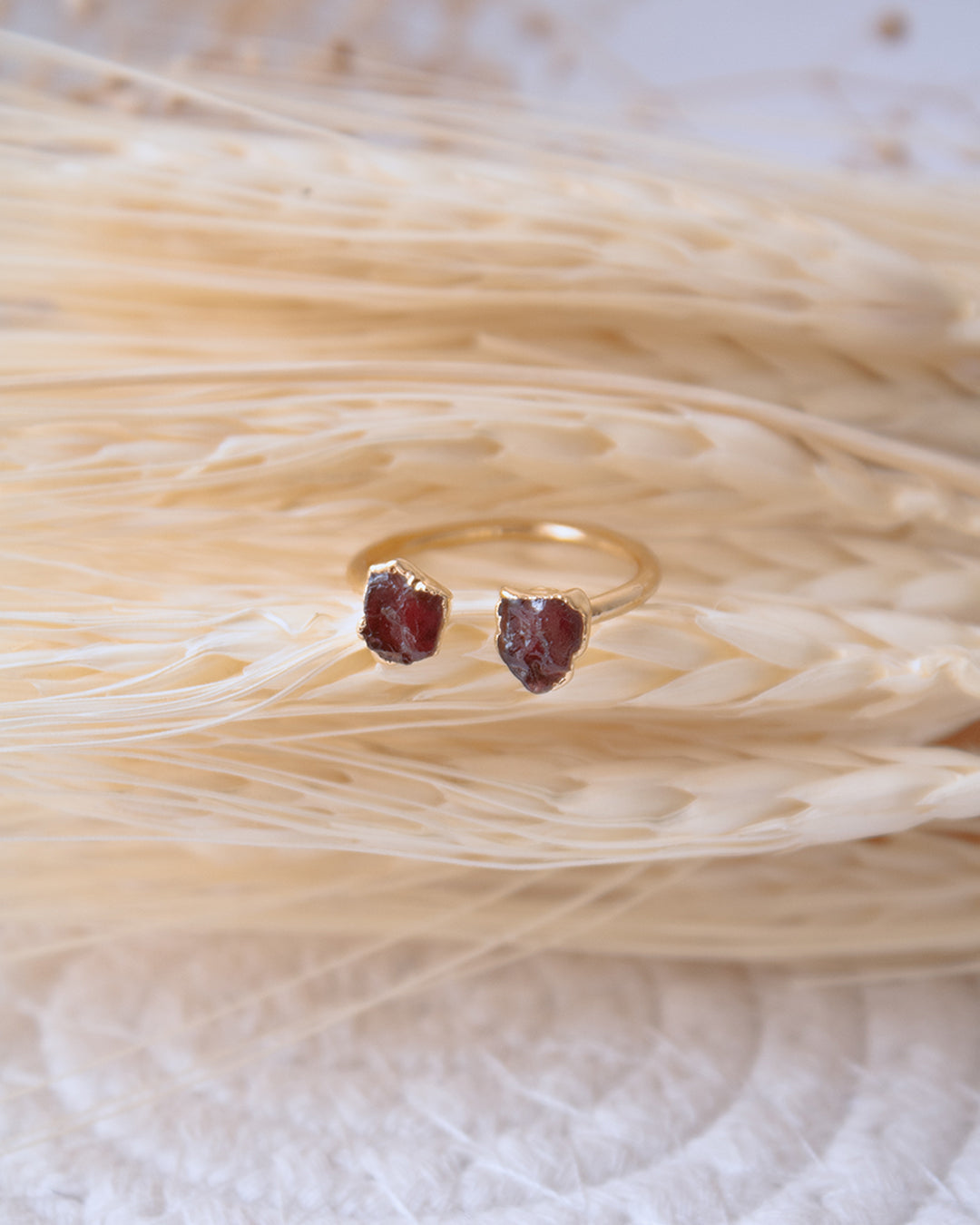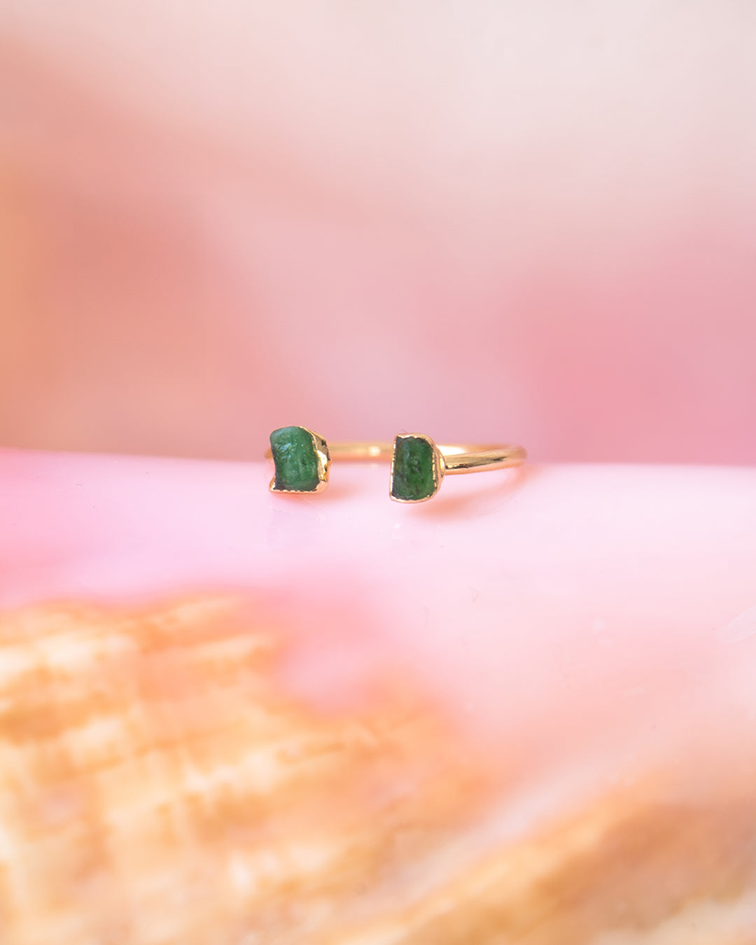 anillo de cobre con baño de oro de 14k con incrustaciones de granate, rodolita, apatita, agua marina o esmeralda