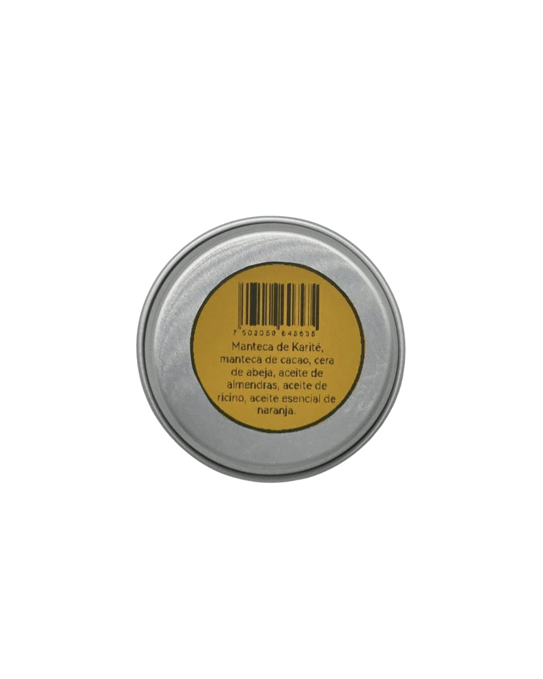 Ingredientes: Manteca de Karité, manteca de cacao, cera de abeja, aceite de almendras, aceite de ricino, aceite esencial de naranja.