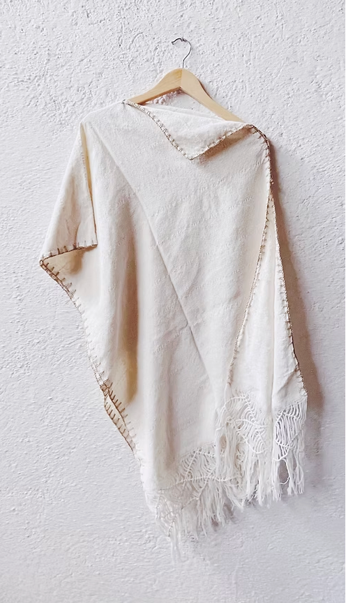 ·Capa de playa, tejida en telar de pedal y unido tejido a mano