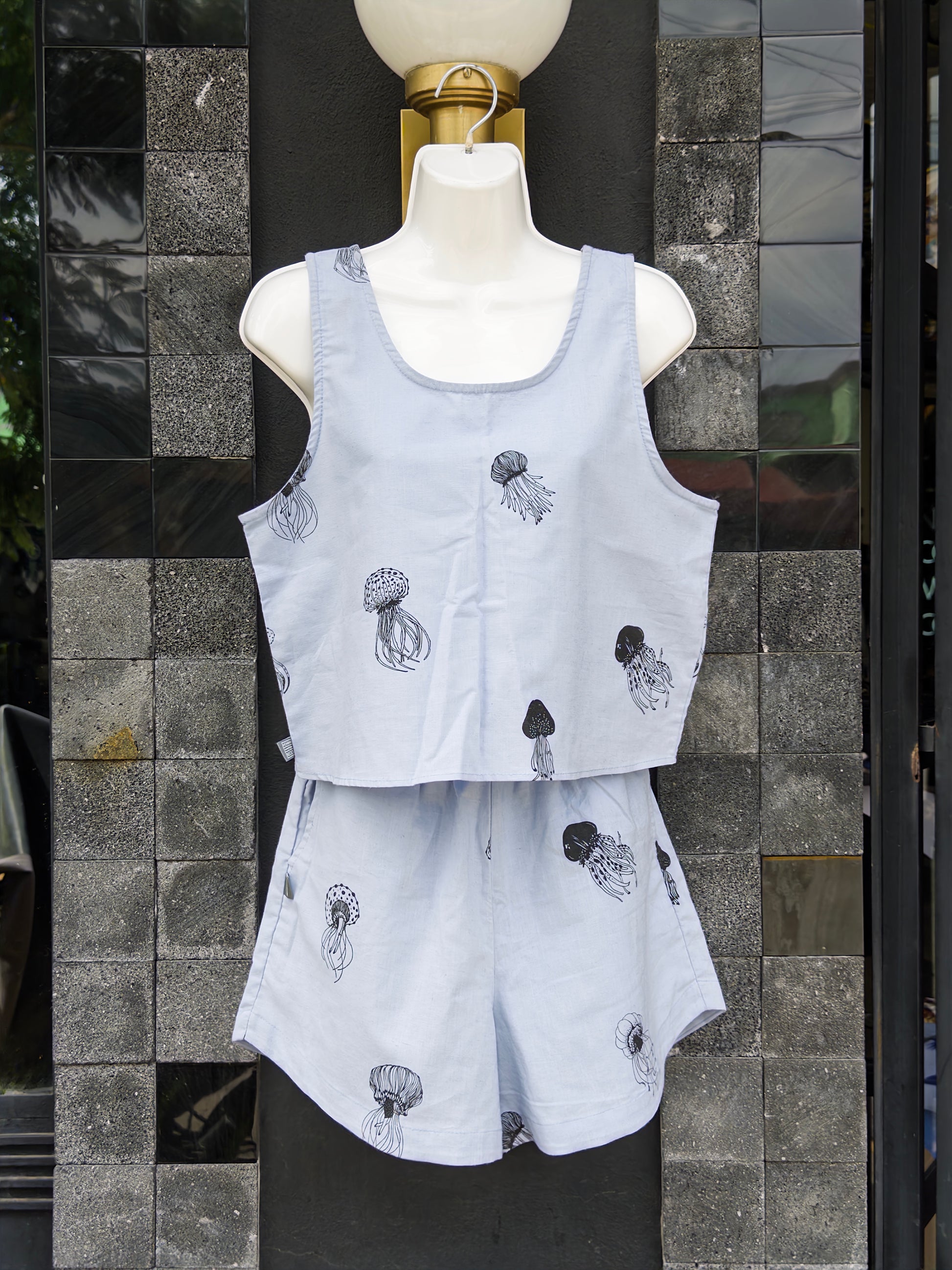 conjunto (top y short) medusa azul celeste