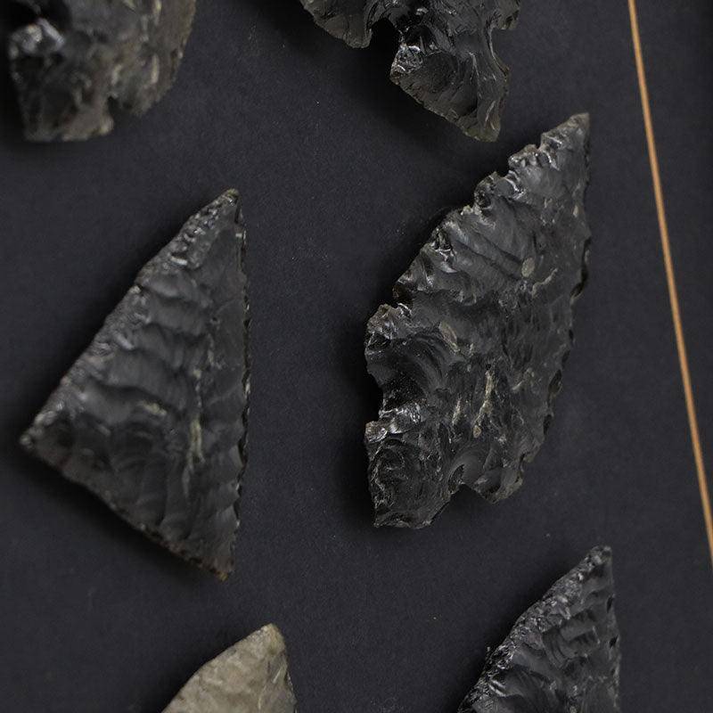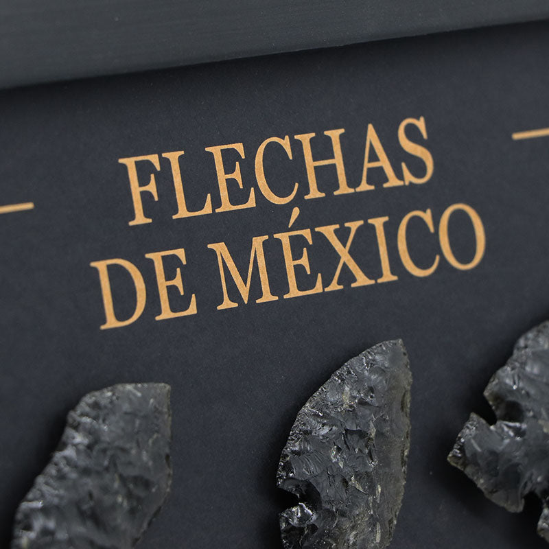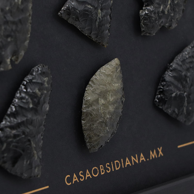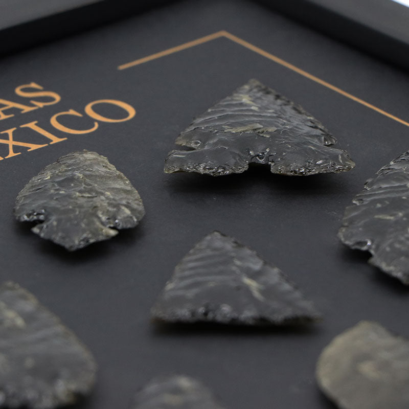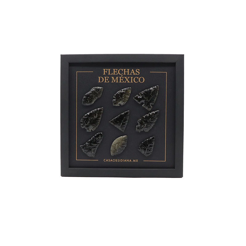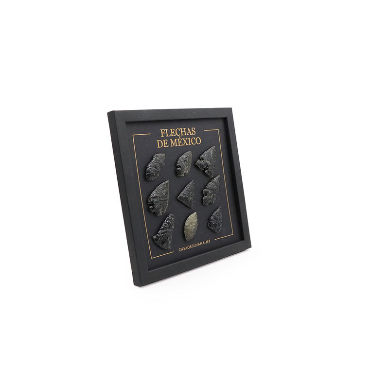 Cuadro de madera con 9 puntas de obsidiana, cada pieza está elaborada por artesanos del valle de Teotihuacán.