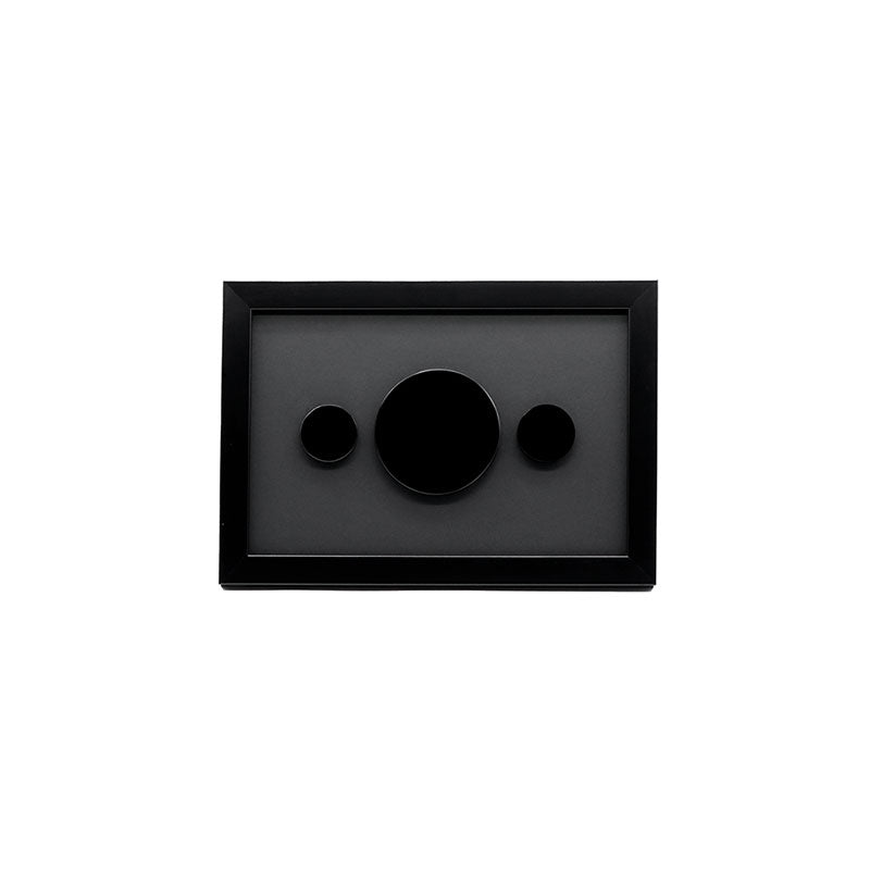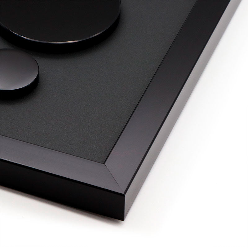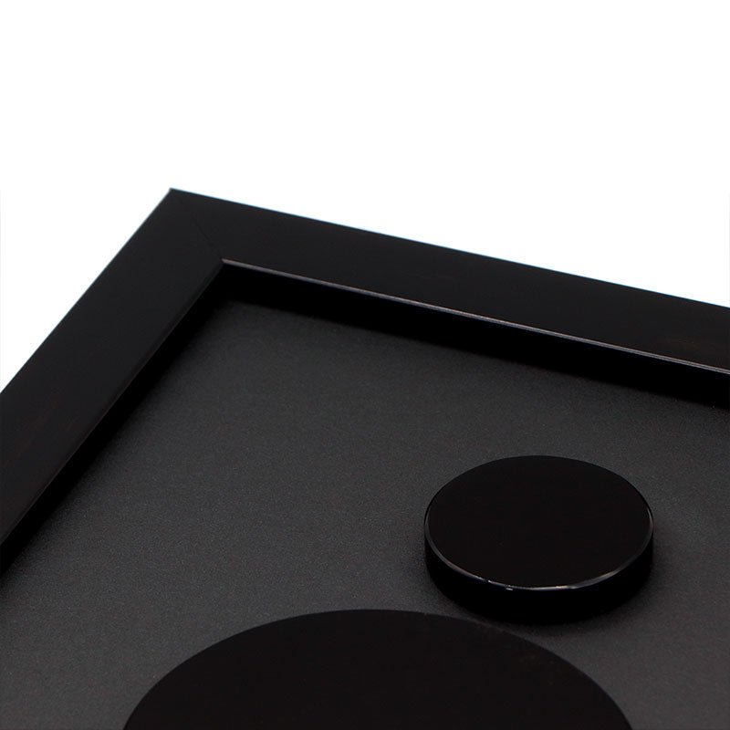 Cuadro negro con 3 discos de obsidiana negra.