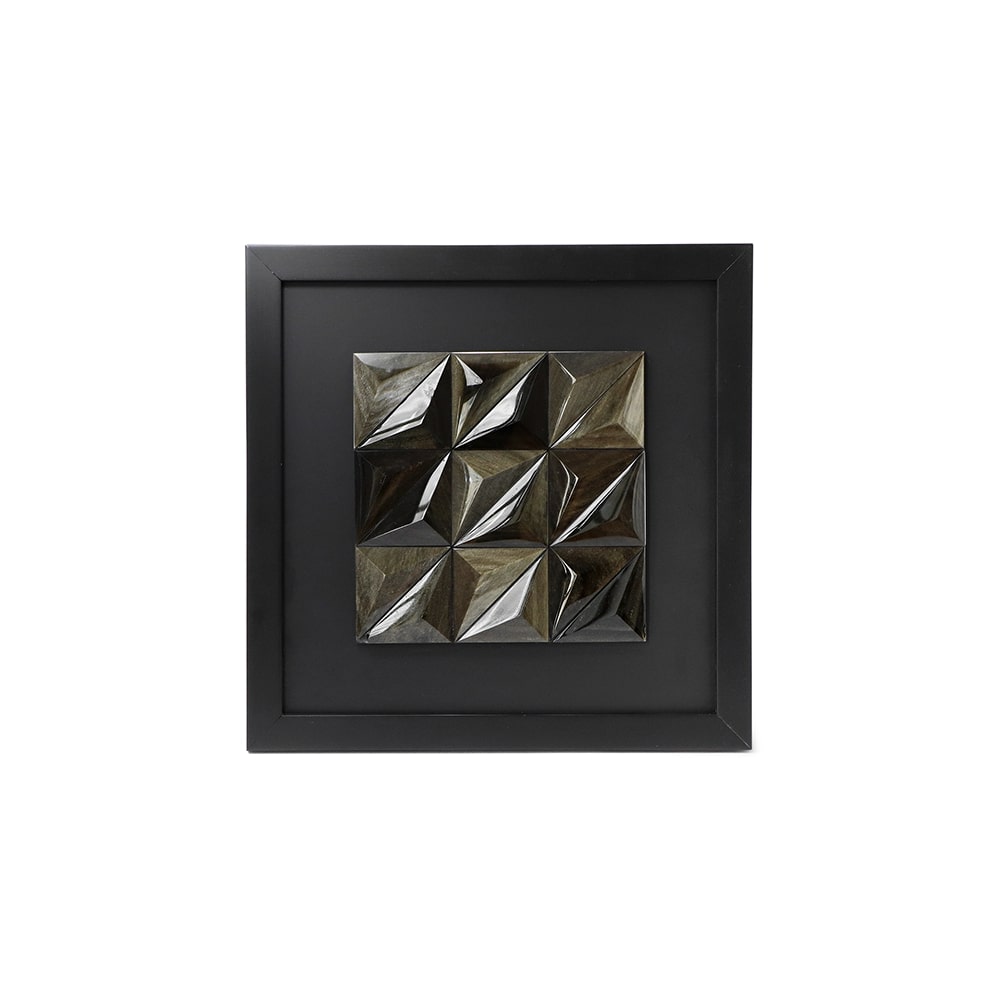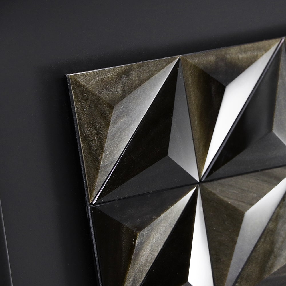Cuadro negro compuesto de 18 prismas de obsidiana dorada.