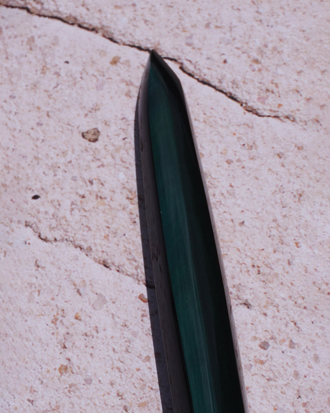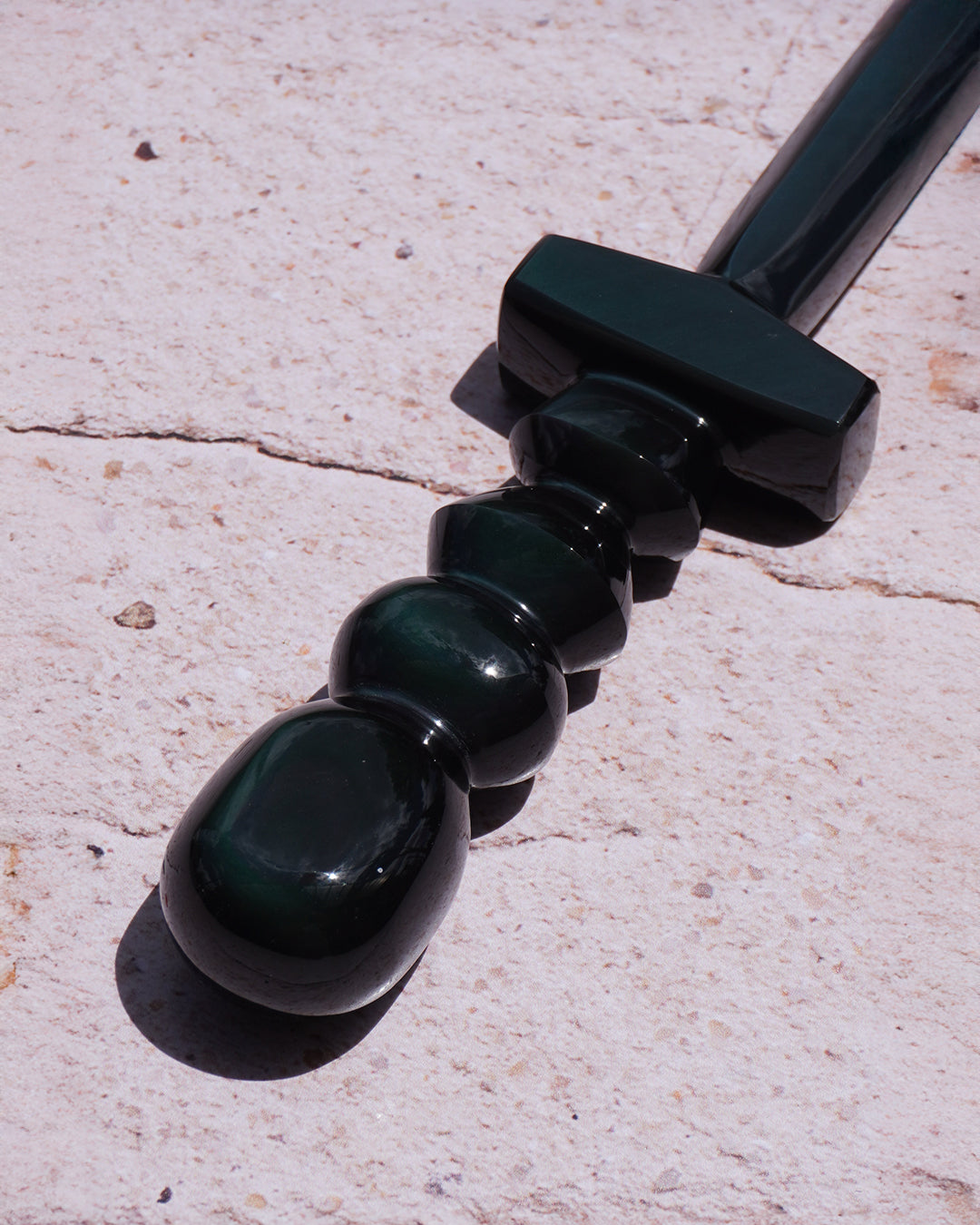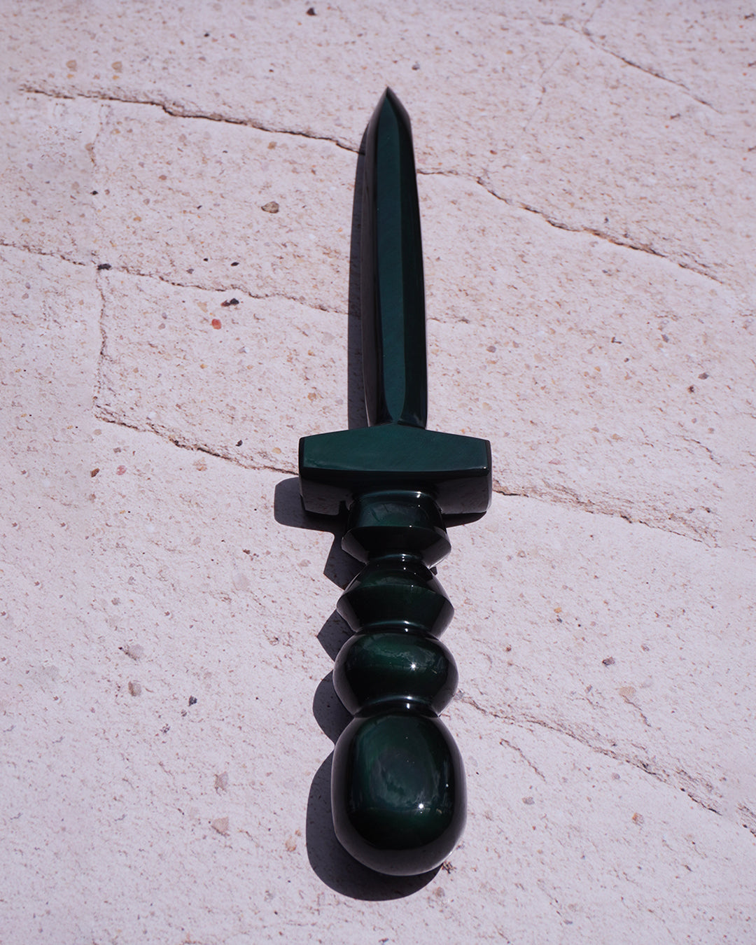 Daga de obsidiana arcoiris con mango de tres semiesferas y punta delgada