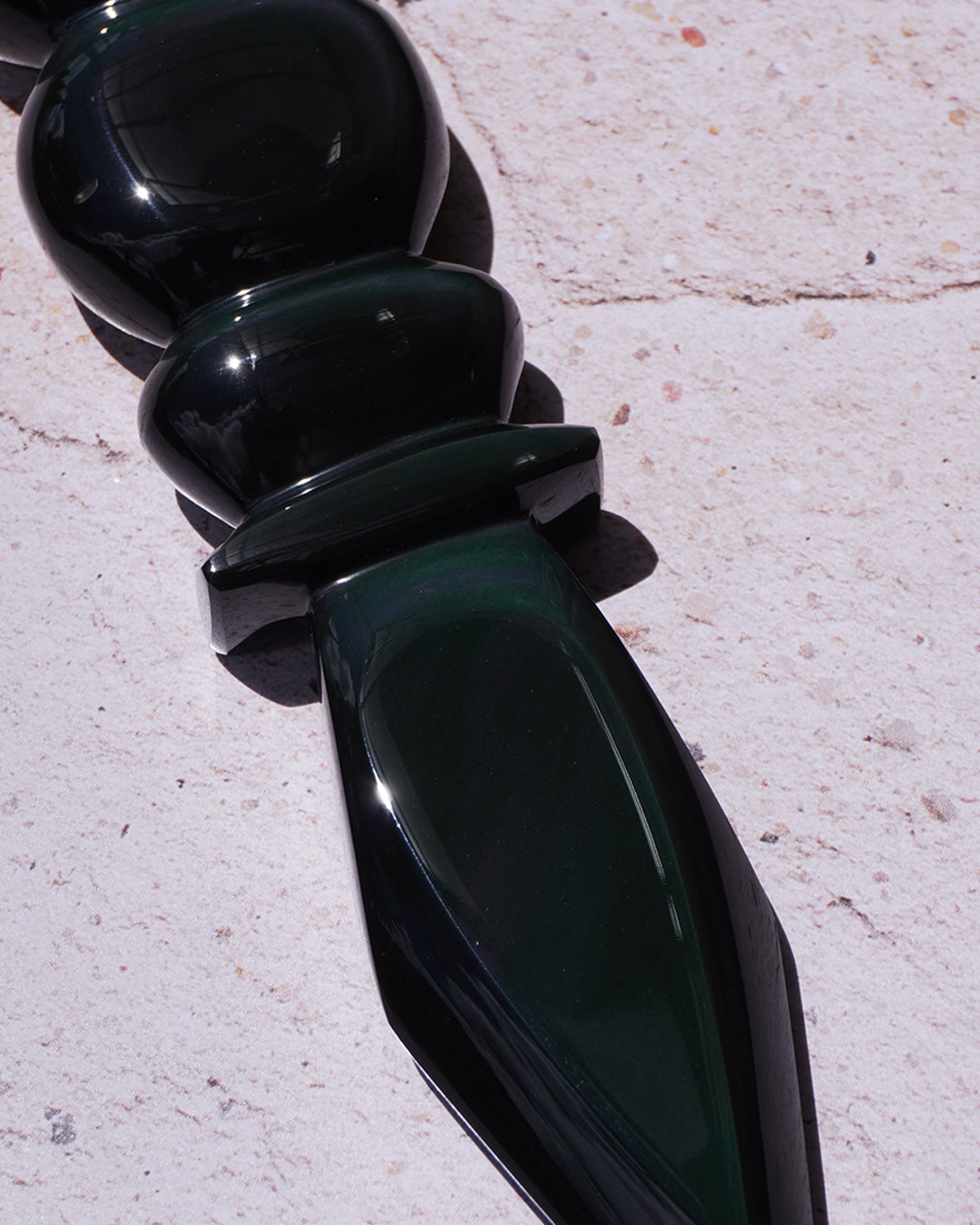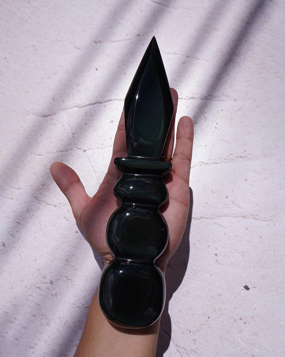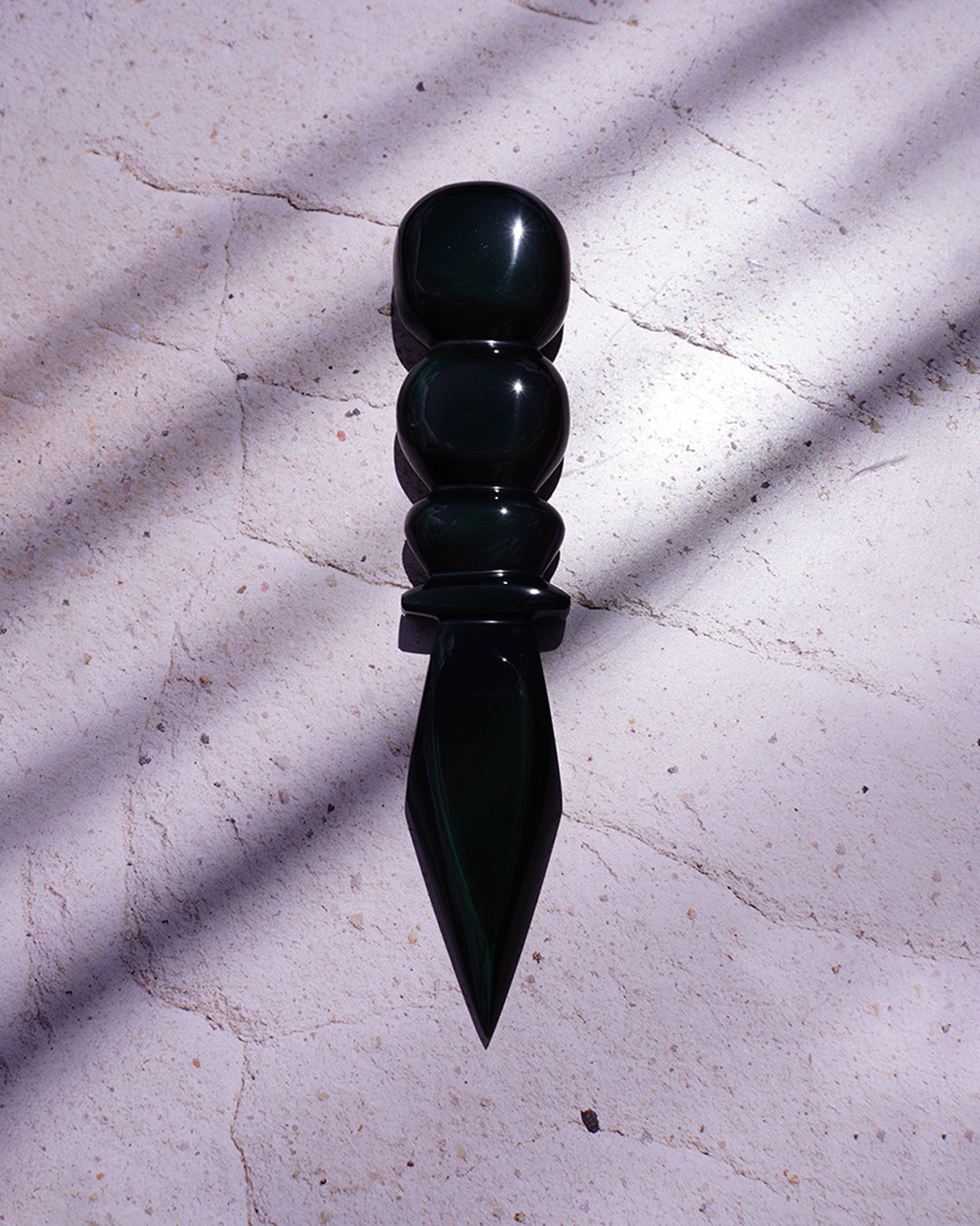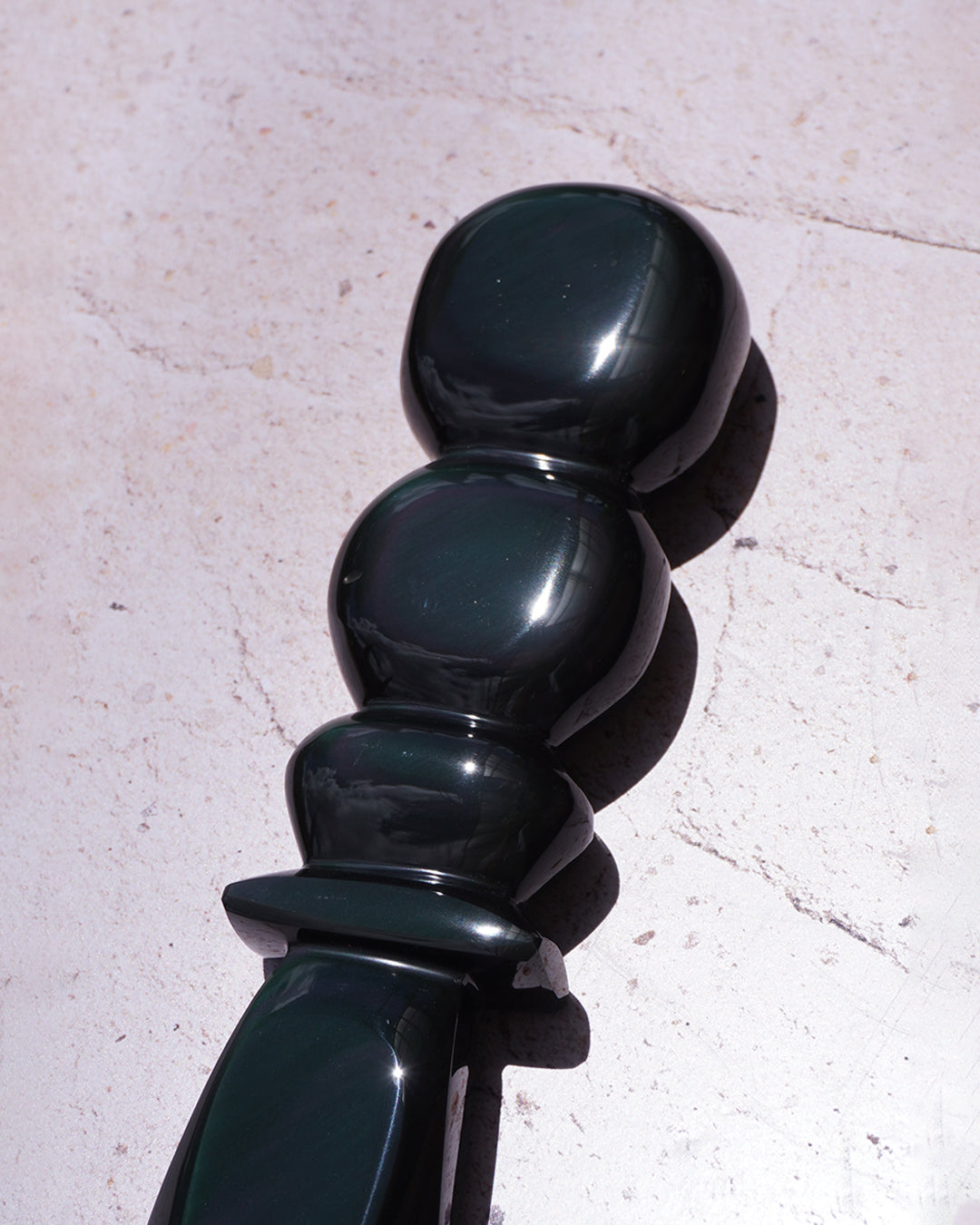 Daga de obsidiana arcoiris con mango de tres semiesferas con cara plana