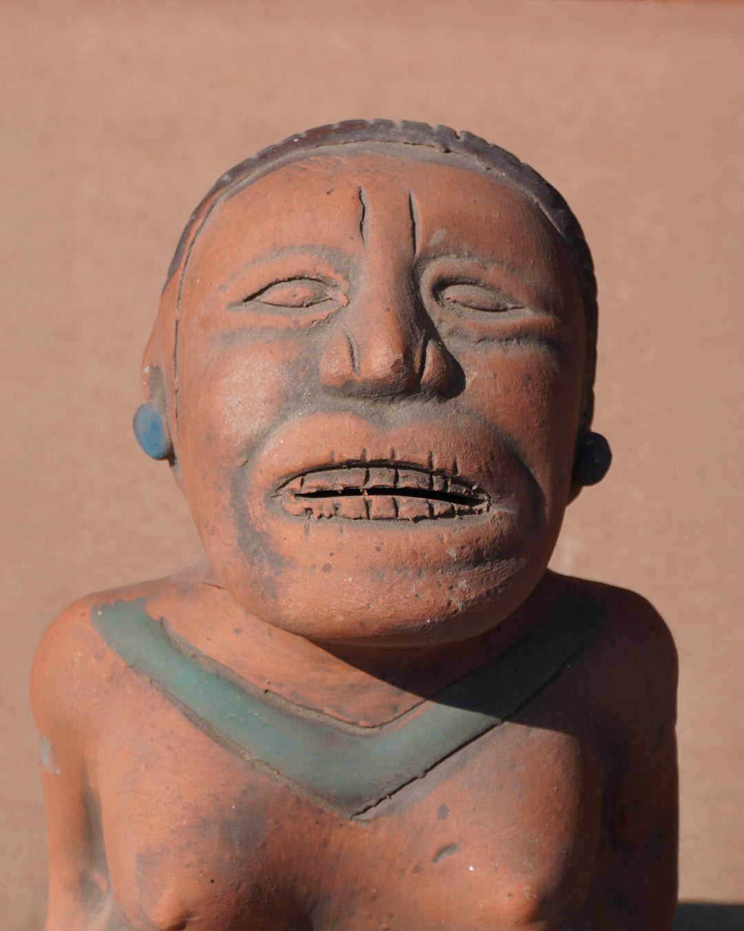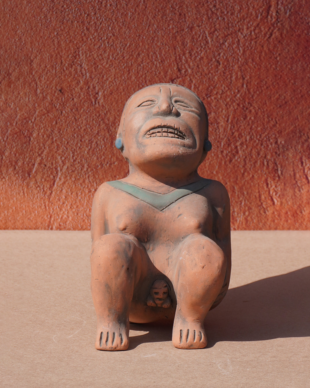 ·Figura antropomorfa de barro bruñido que representa a una mujer en cuclillas dando a luz