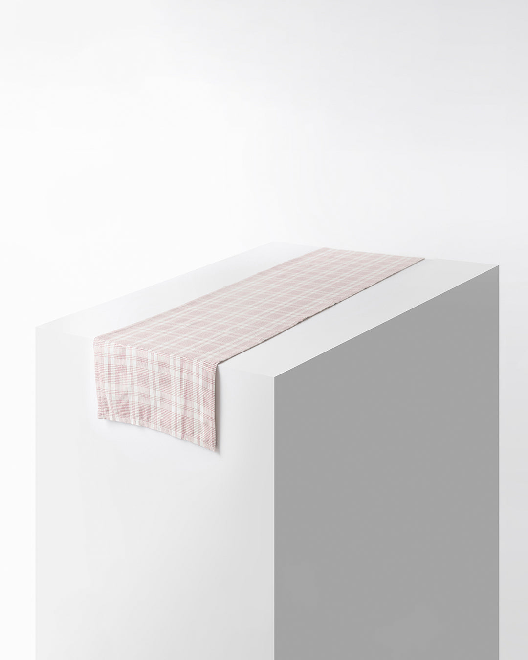 caminos de mesa son 100% de algodón peinado, tejidos en telar de pedal y terminados con costura inglete a 2 cm