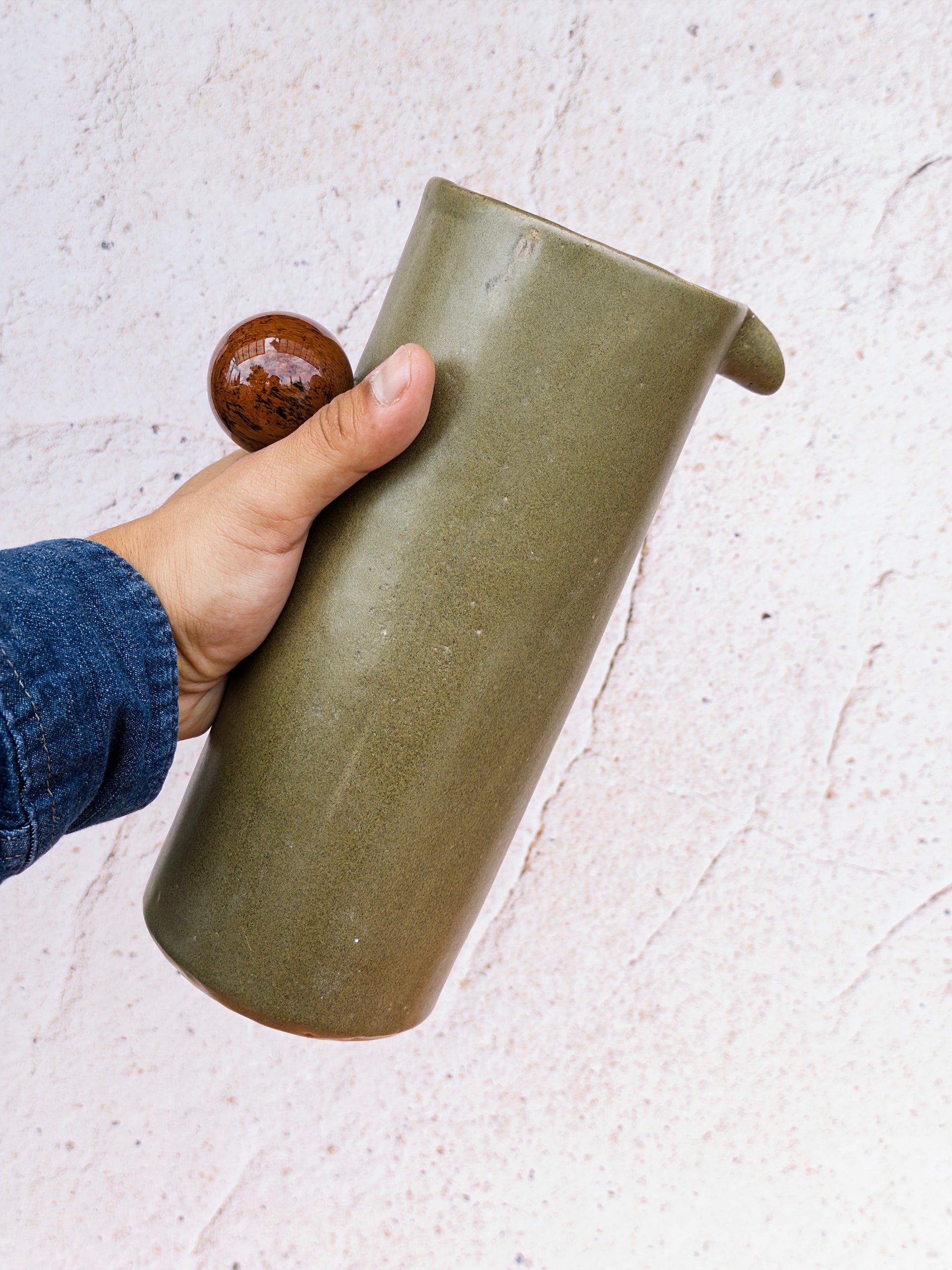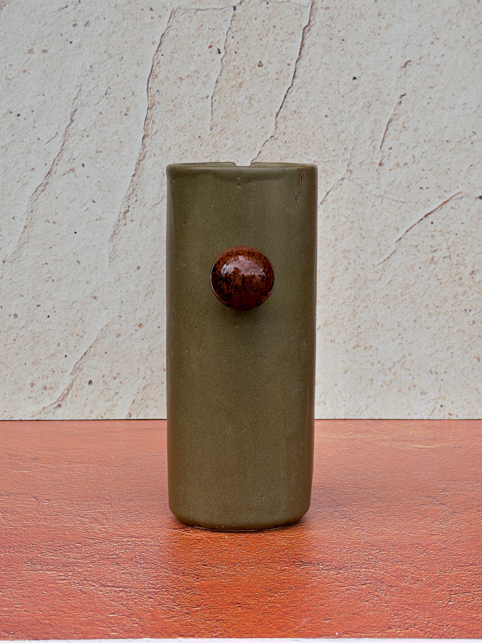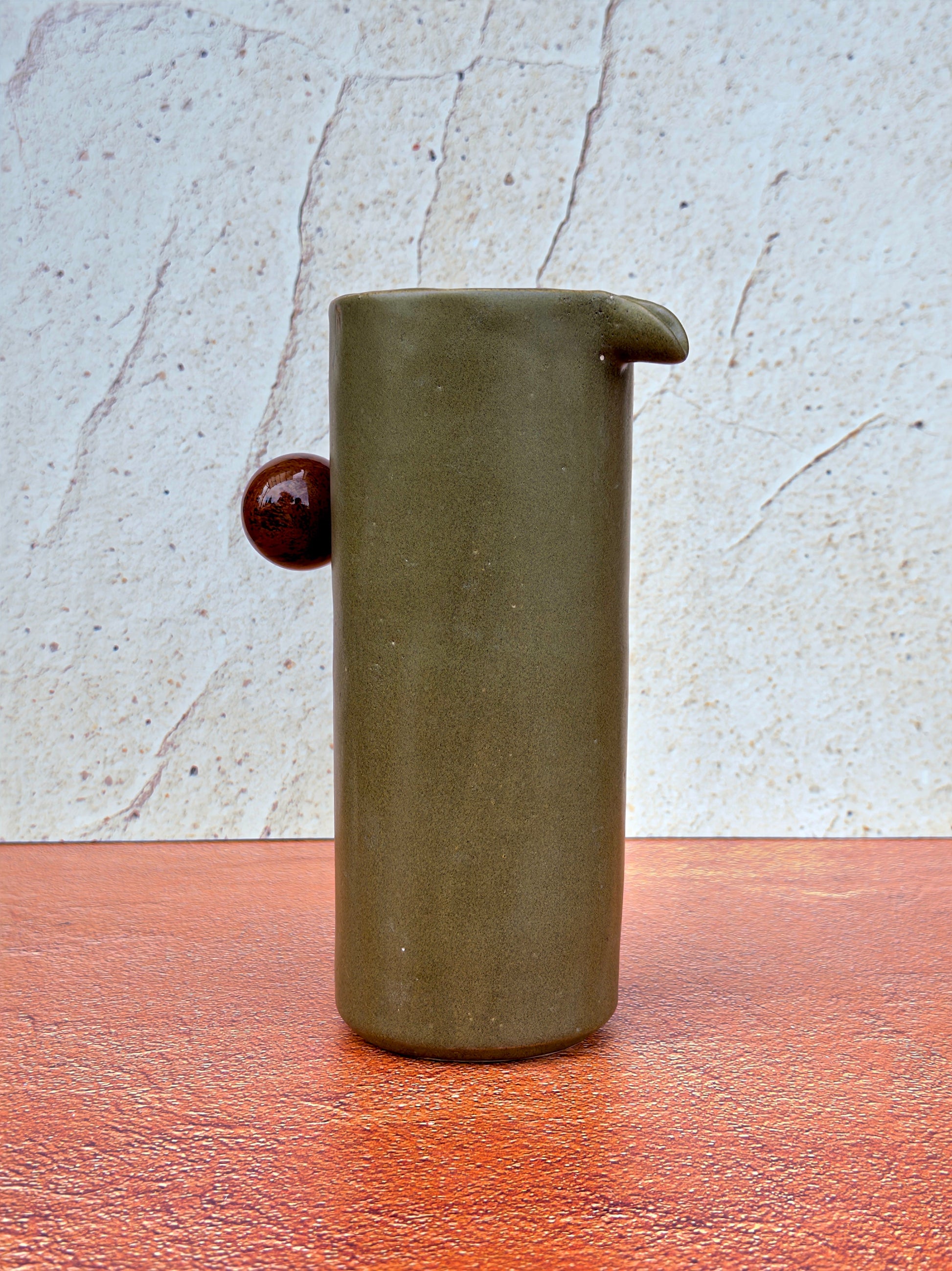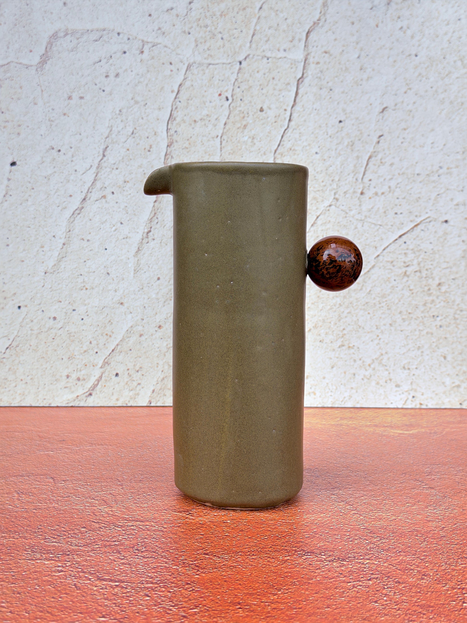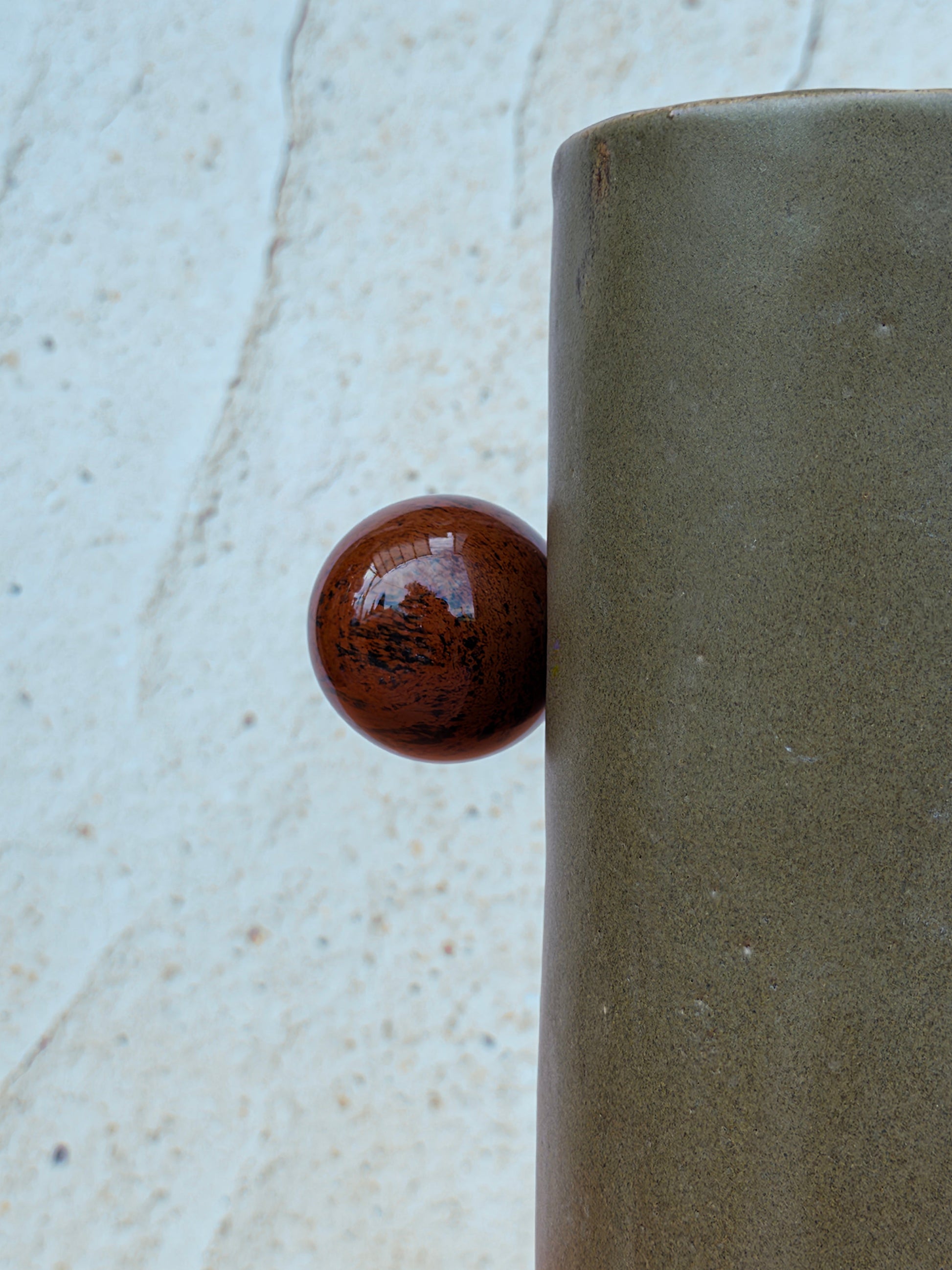 Jarra de cerámica de alta temperatura con esfera de obsidiana café.