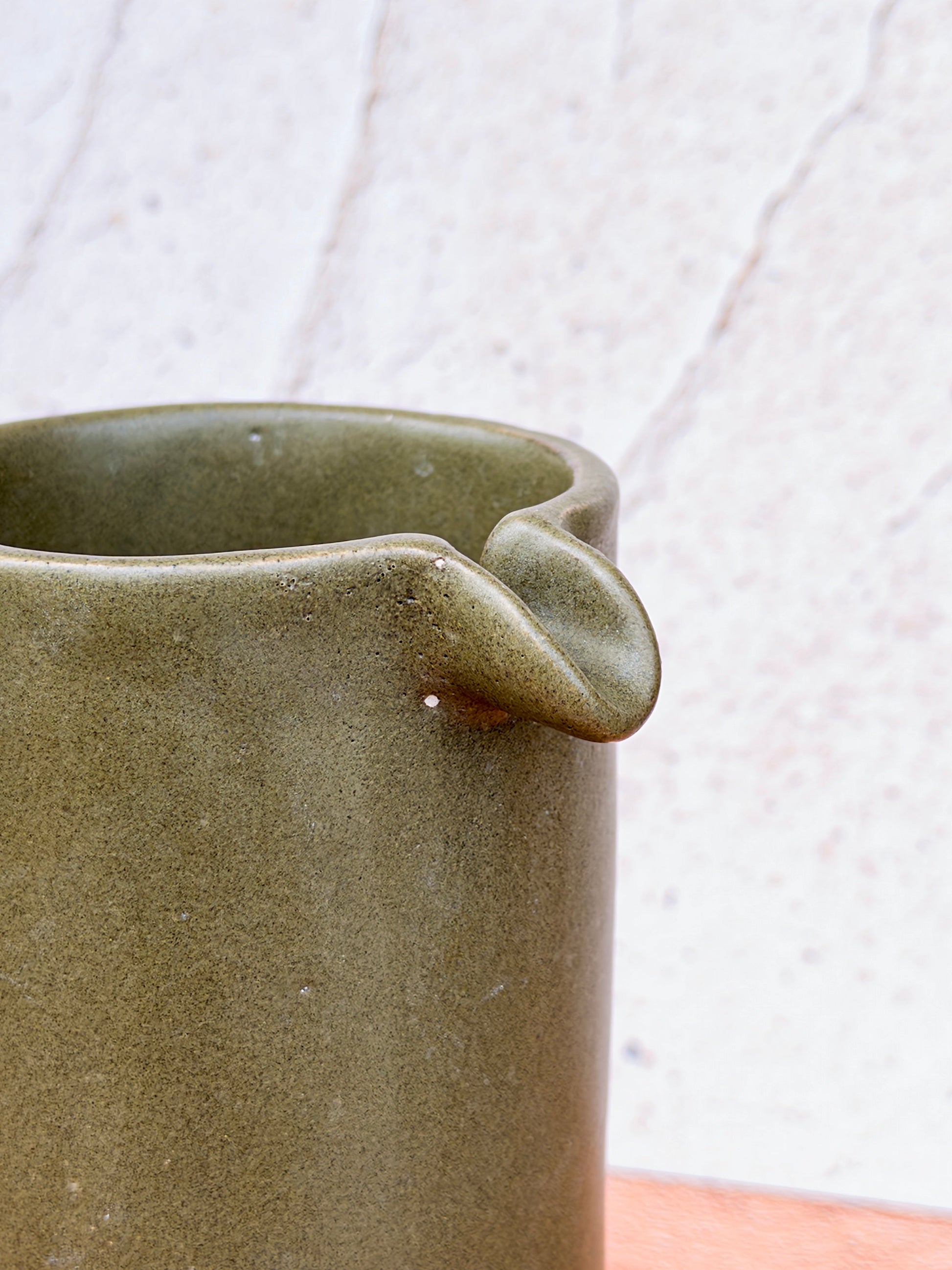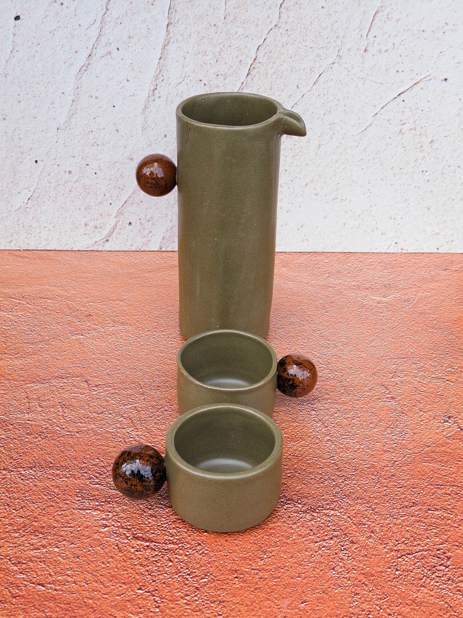 Pieza hecha a mano en torno, una obra artesanal con irregularidades naturales del proceso de esmaltado, lo que le confiere una personalidad distintiva y única. Esmalte de óxidos naturales, 100% libres de plomo, seguras para consumo de bebidas frías y calientes. Las jaladera es de obsidiana café, elaboradas en el Valle de Teotihuacán.