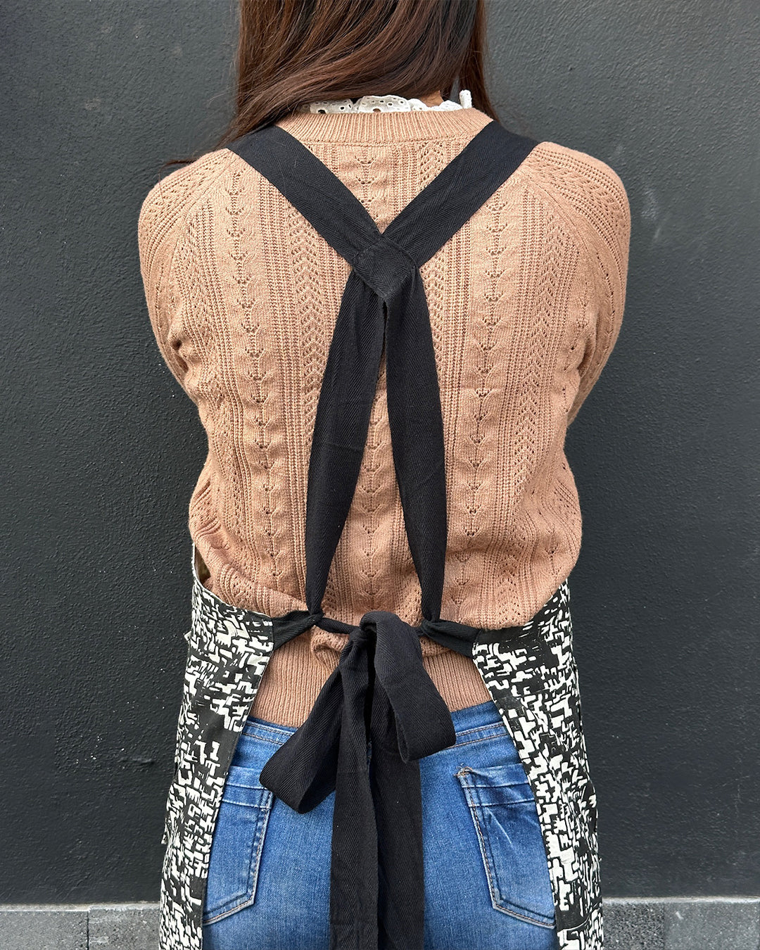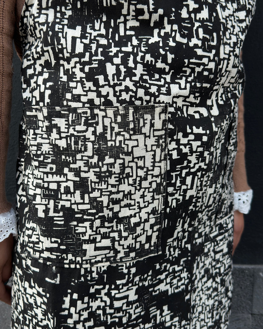 ·mandil de manta prelavada con impresión de linografia con figura pixelada
