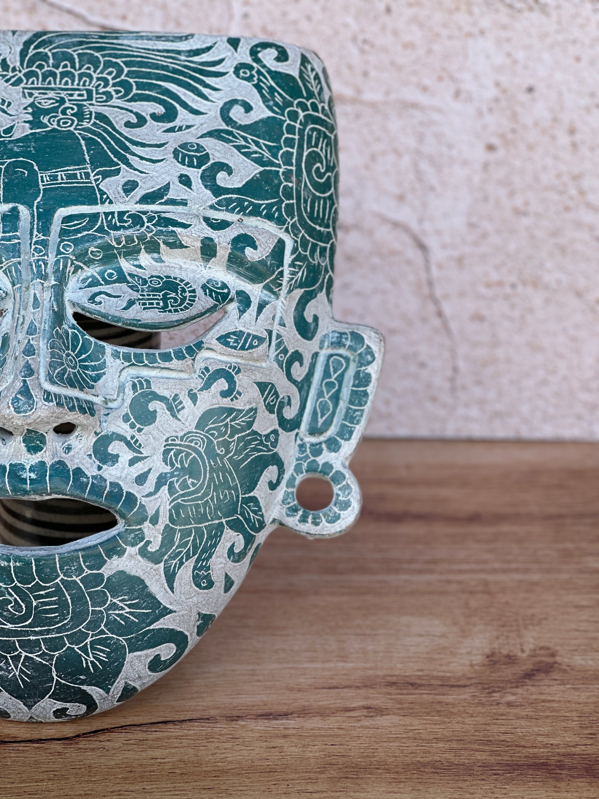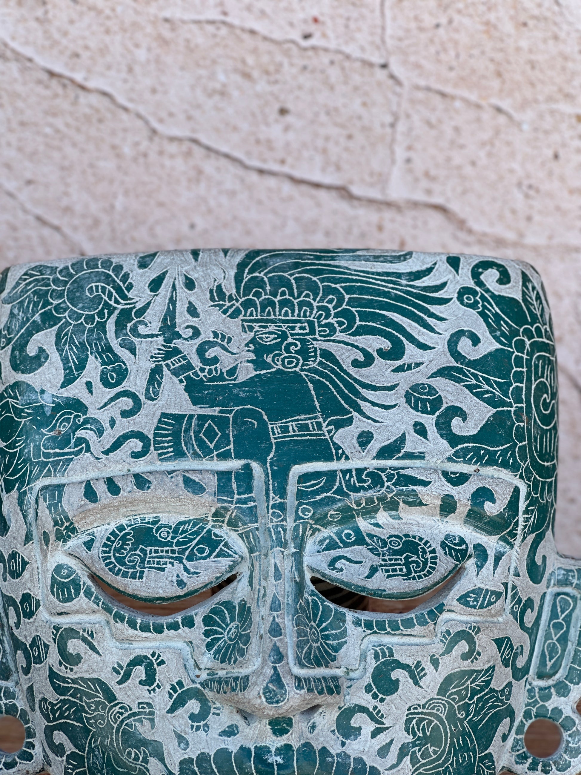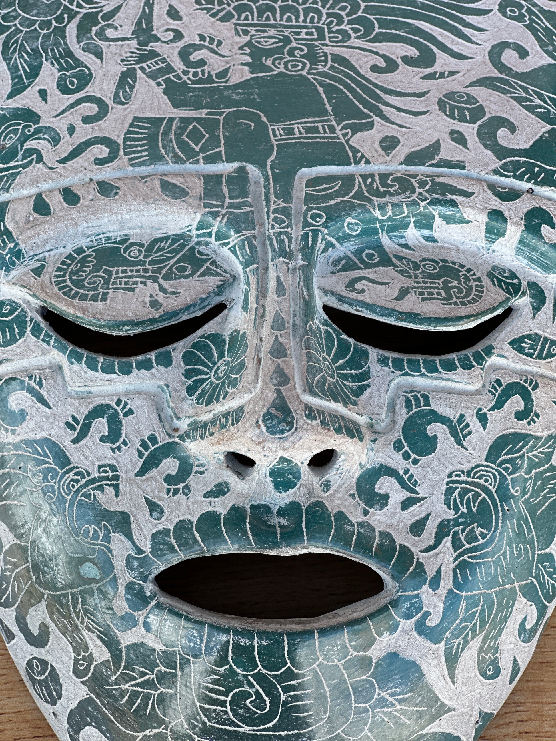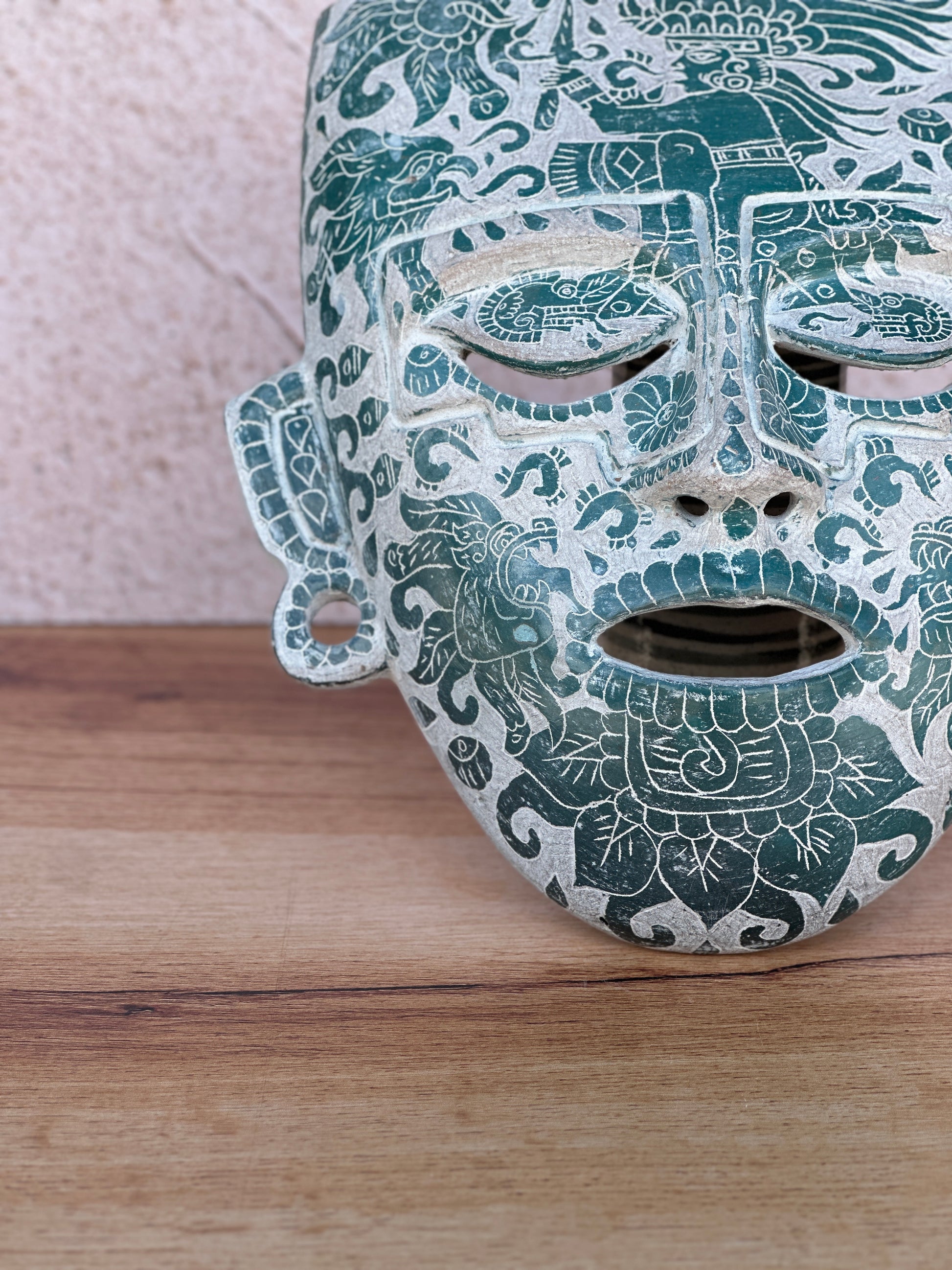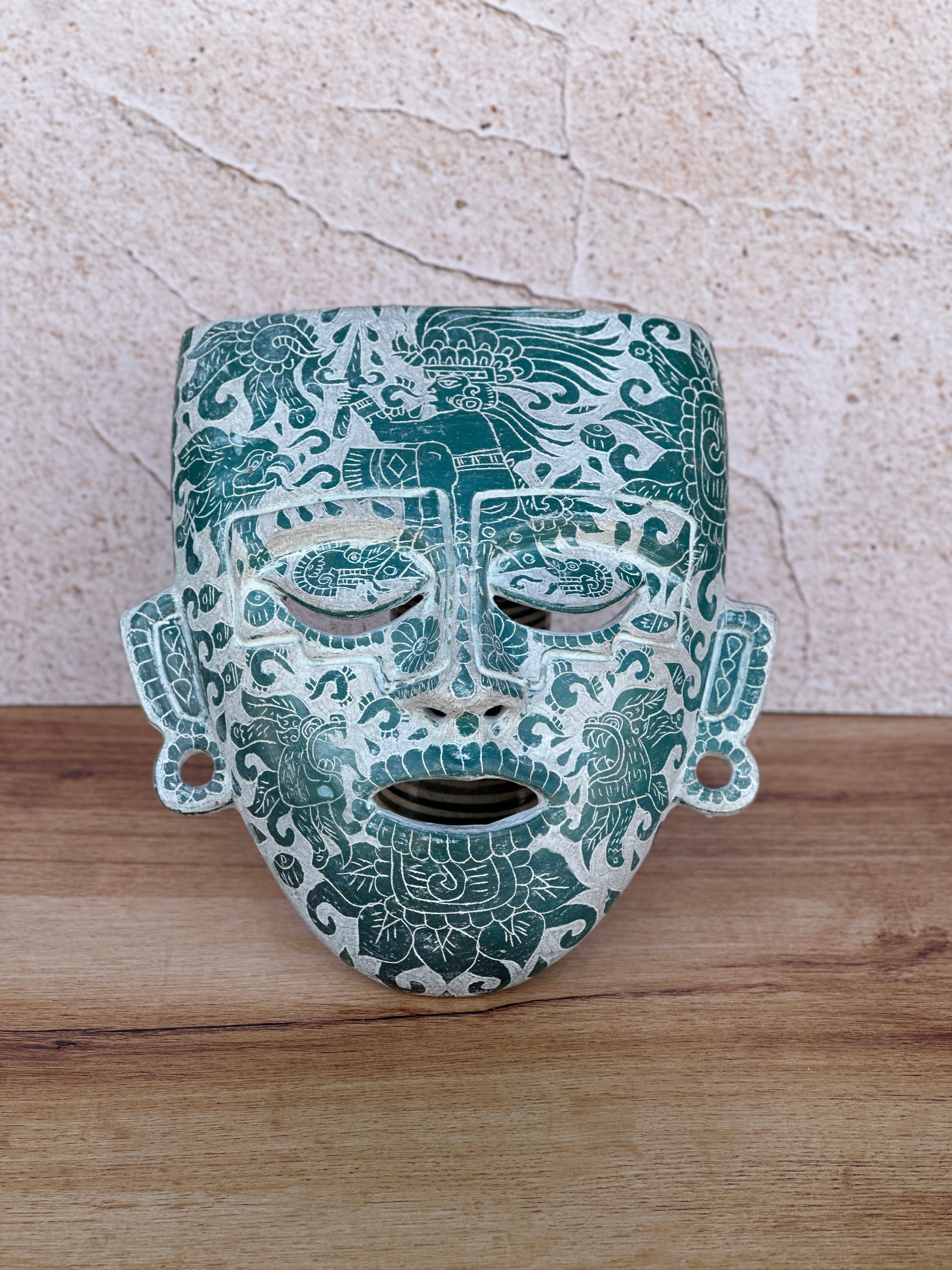 mascara teotihuacana grande con grabado verde