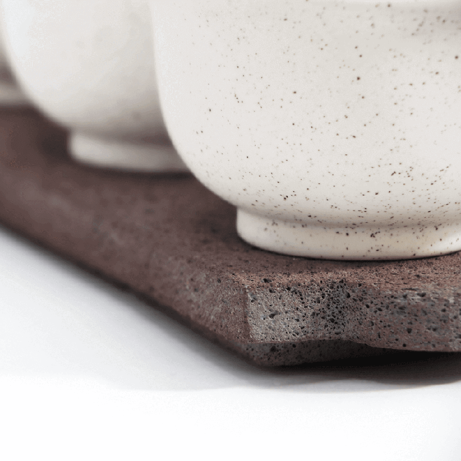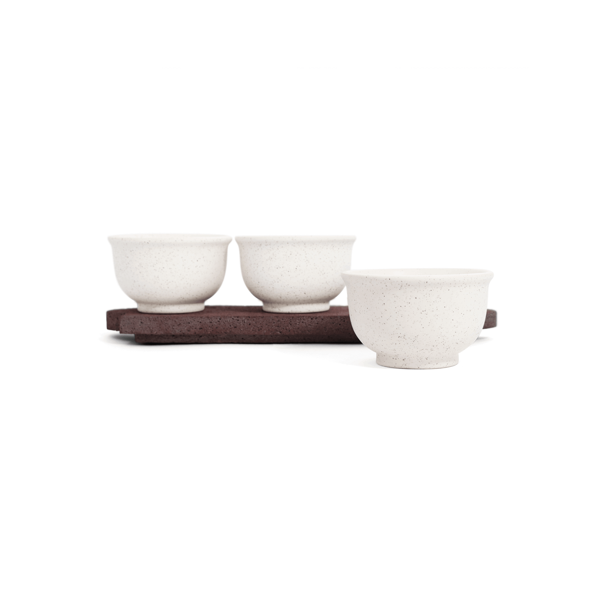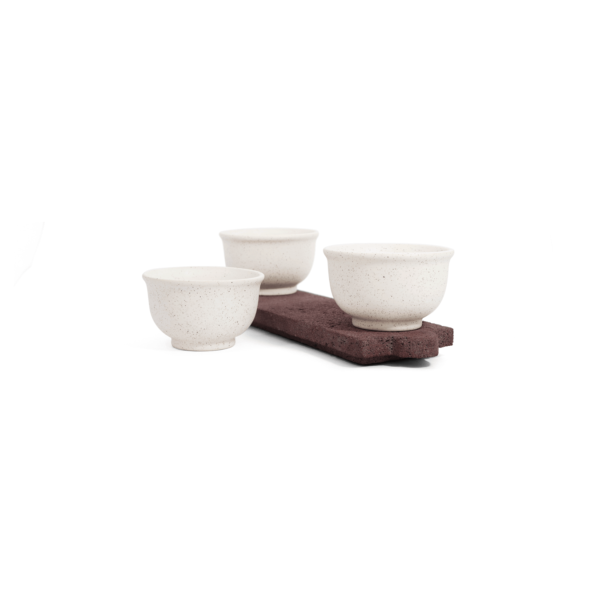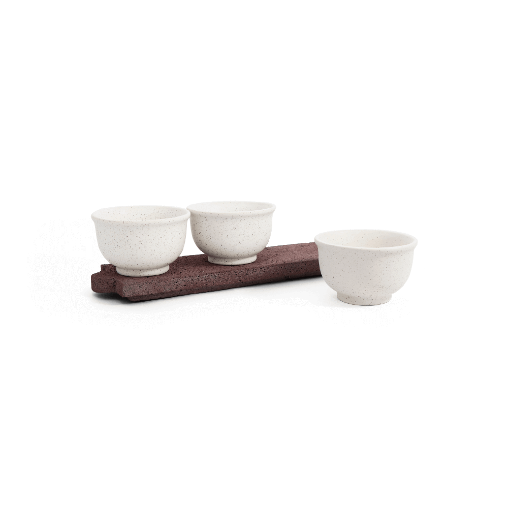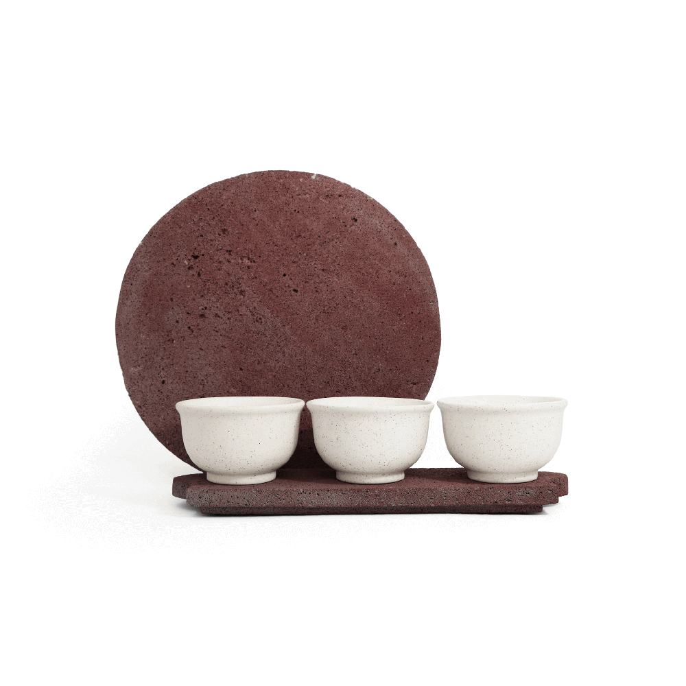 ·Juego de 3 salseras de cerámica con base de tezontle rojo.